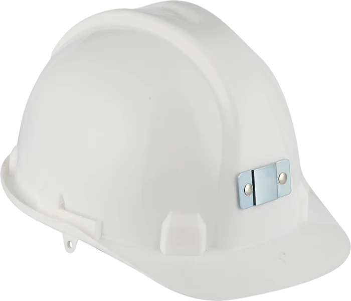 Adjustable hard hat with metal lamp bracket, cable management, and replaceable sweatband. Lightweight and SABS approved for reliable protection.